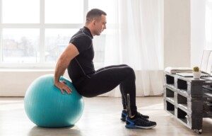 For some reason, when the hands are placed on the ball rather than a bench, this adds intensity to seated dips; they are more difficult and your triceps will really burn.