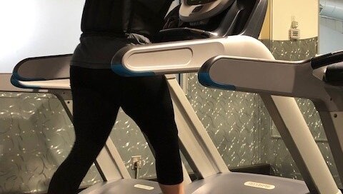 I couldn’t believe what I saw today at the gym: A young man with a weighted backpack walking on a treadmill incline – but holding onto the front bar!